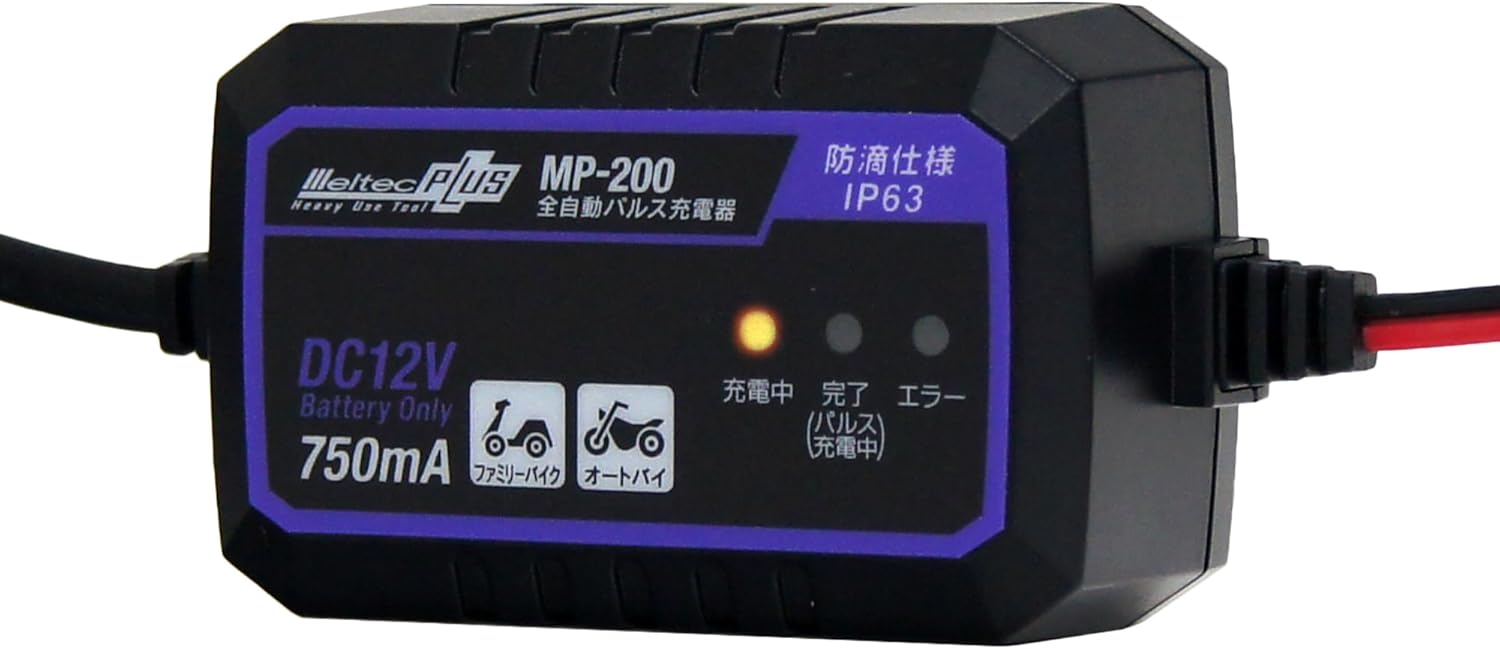 Amazon | メルテック(meltec) 全自動パルスバッテリー充電器 (ファミリーバイク/オートバイ) 12V専用 MeltecPlus 定格0.75A バッテリー診断機能付 維持充電(トリクル充電)方式 長期保証3年 MP-200 | カーバッテリー充電器 | 車&バイク