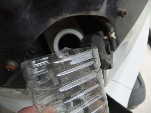 まあ、エンジンがかかるかどうか確認するだけですので水道水を入れます。